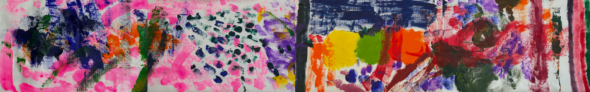 アクリル絵の具や色鉛筆・クレヨンやペンなど、様々な画材を使用し描きます。 それぞれに、自由に自己表現されていて、できた作品を出展しています。